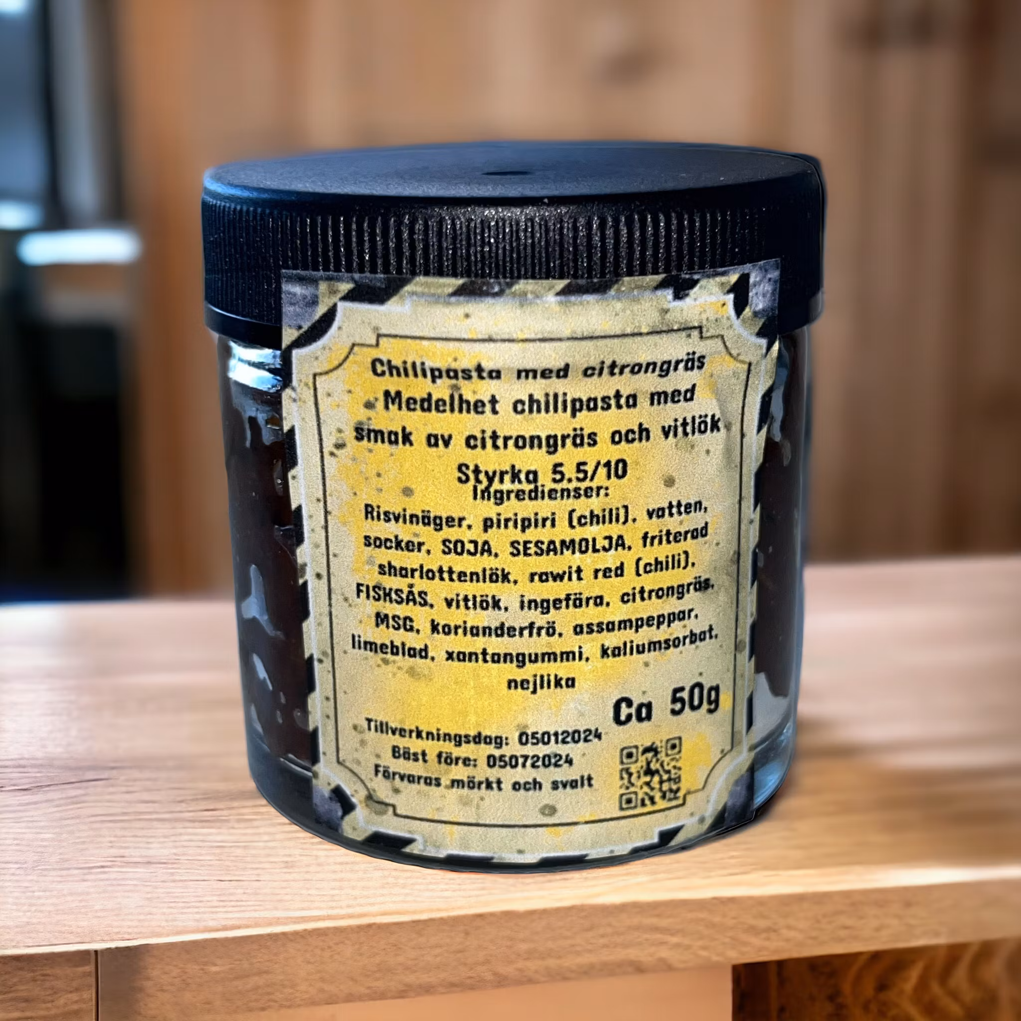 Upplev smakens magi med Warningchilizones chilipasta med citrongräs! Denna välbalanserade och smakrika chilipasta är en kulinarisk resa för dina smaklökar. Med en styrka på 5.5/10 erbjuder den en perfekt dos av värme utan att överväldiga.