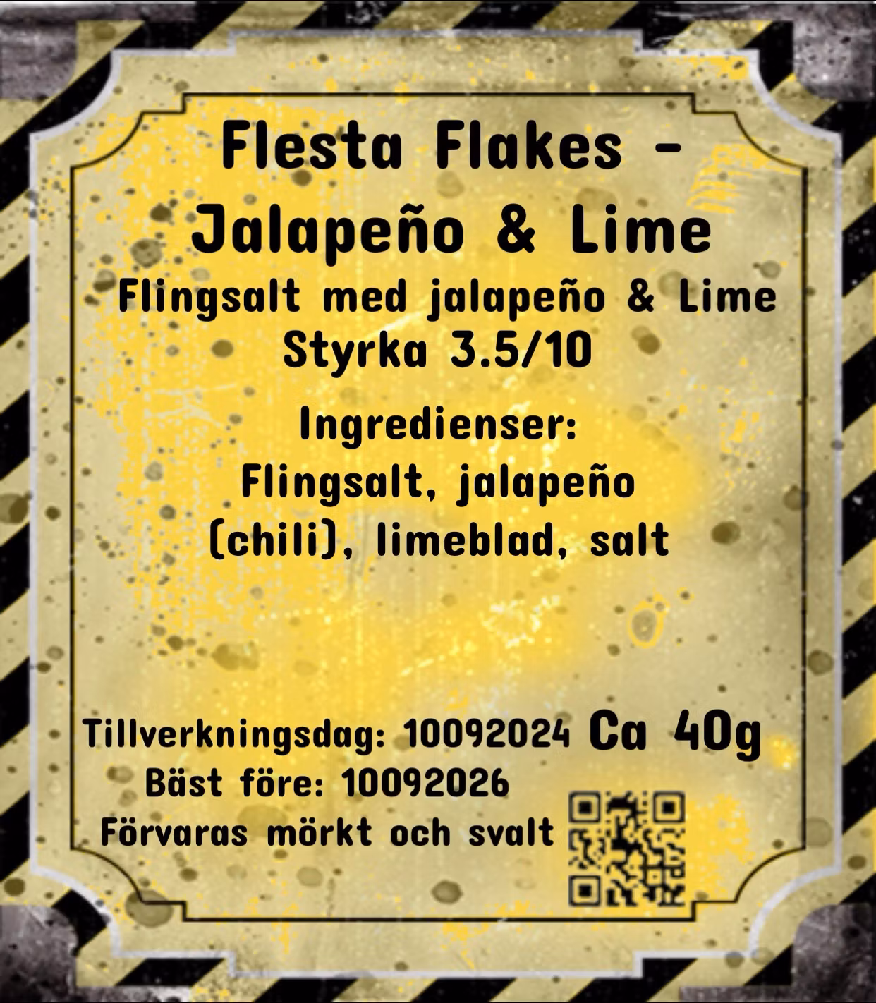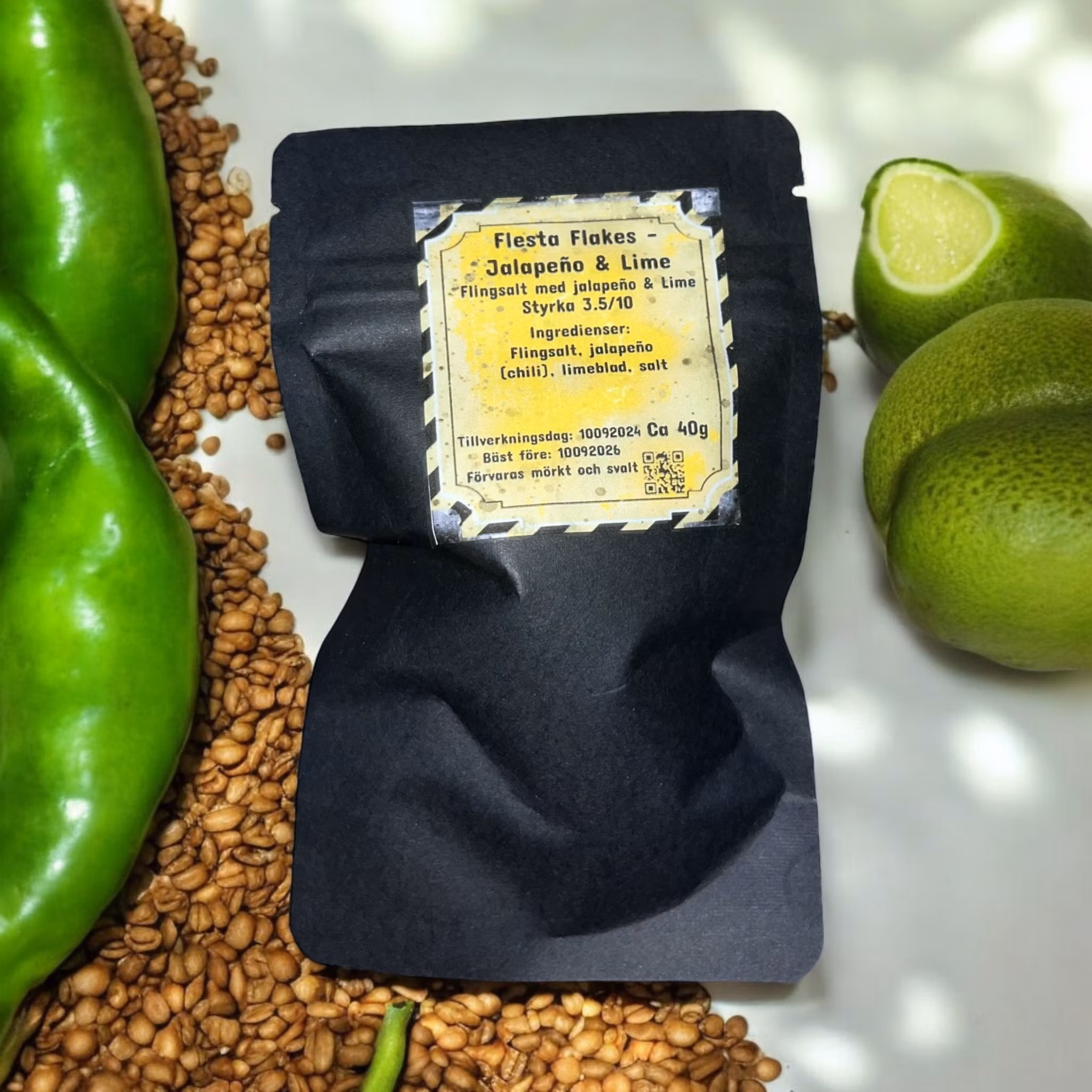 Ingredienser: Flingsalt, jalapeño, limeblad, salt.