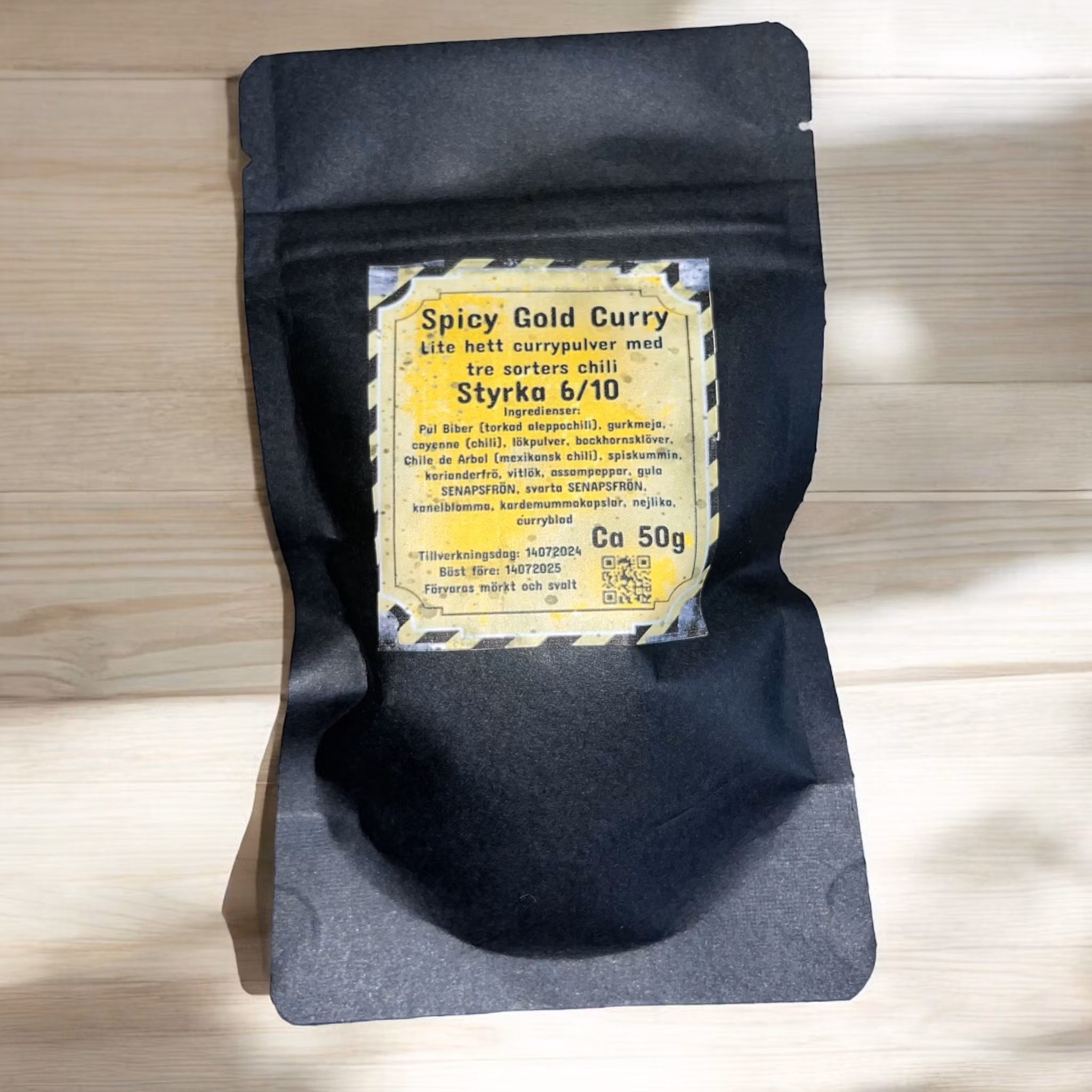 Förpackad i eleganta 50g pappåsar, är Spicy Gold Curry både en visuellt tilltalande och miljövänlig krydda som förgyller ditt kök.