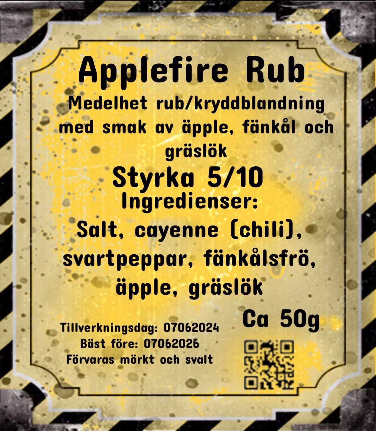 Ta dina smaklökar på en resa med Applefire Rub! Denna unika kryddblandning är designad för att förvandla varje måltid till en explosion av smaker. Med en perfekt blandning av salt, het cayenne, aromatisk svartpeppar och den sötsyrliga fräschören från äpple, förstärkt med nästan lakritsaktiga toner från fänkålsfrön och en hint av gräslök, är denna rub både sofistikerad och oemotståndlig.