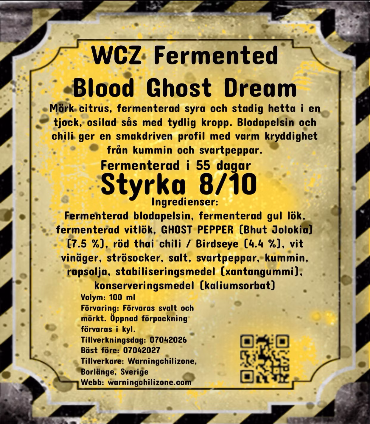 WCZ Fermented Blood Ghost Dream – fermenterad chilisås med blodapelsin, ghost pepper och varm kryddighetWCZ Fermented Blood Ghost Dream är en mörk och smakdrive