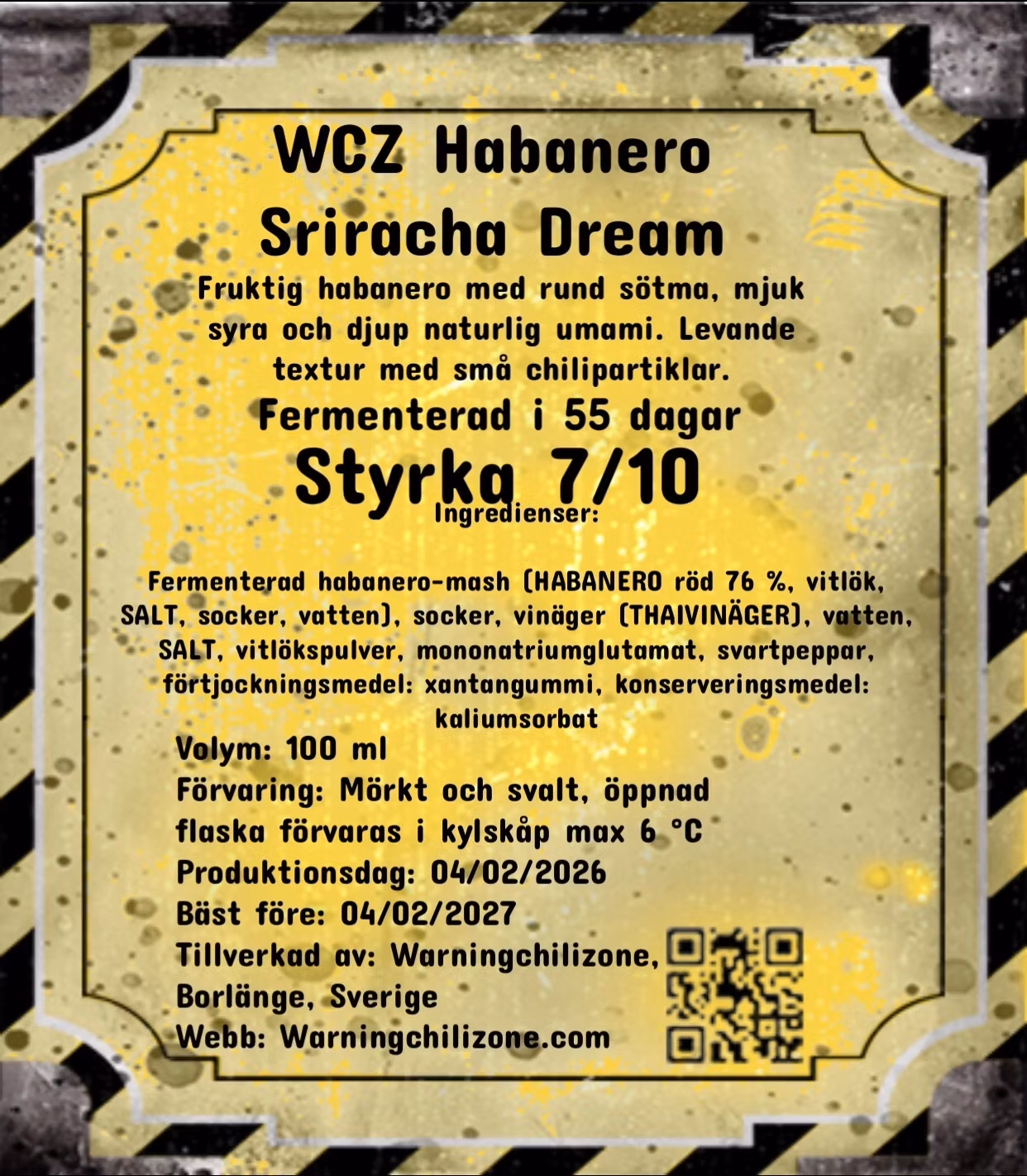 WCZ Habanero Sriracha Dream – Fermenterad sriracha med markerad habaneroBeskrivning: En klassisk fermenterad sriracha med 55 dagar lång fermentering