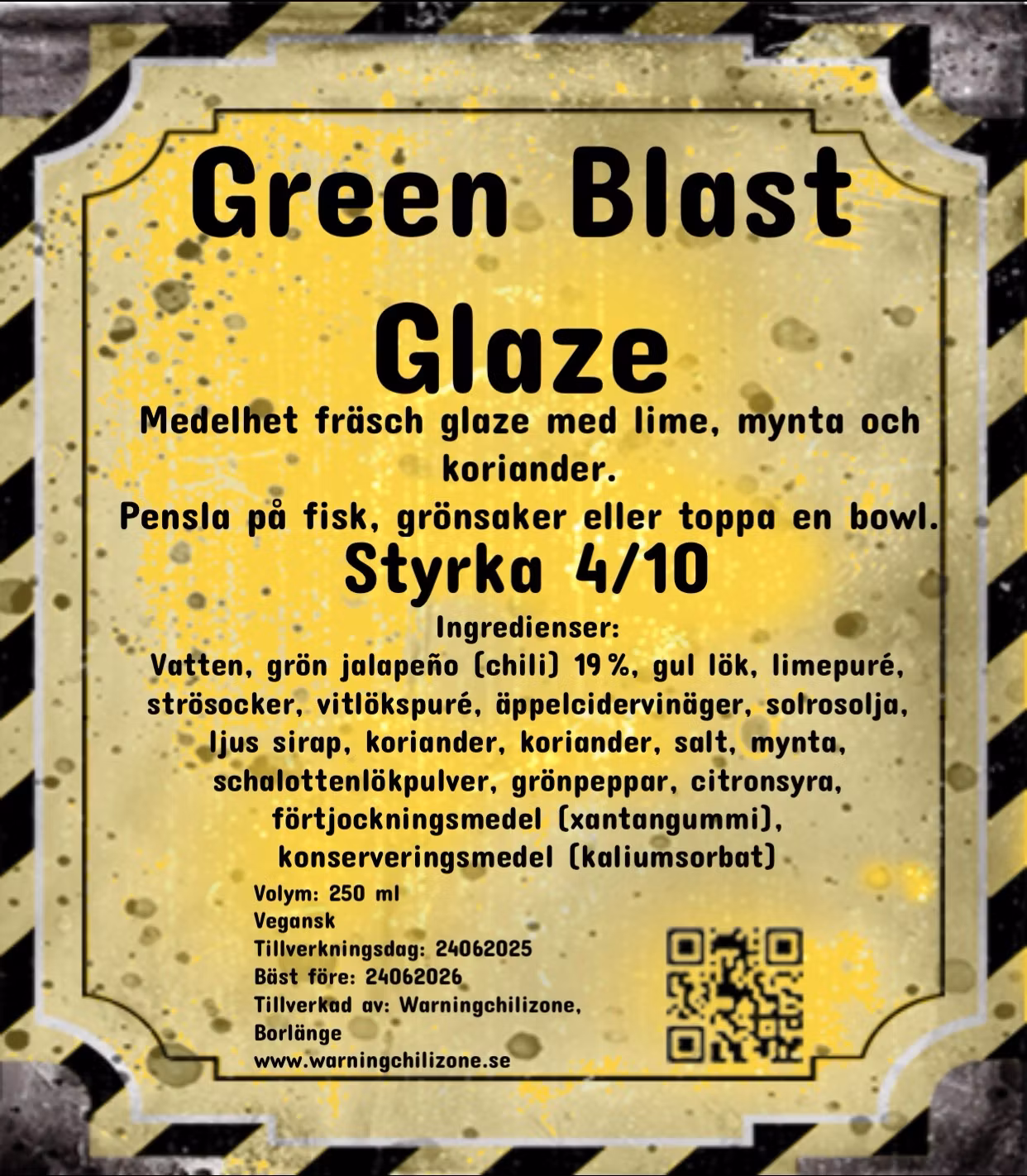 Green Blast Glaze Àr en silad, grön glaze med tropisk frÀschör och balanserad hetta. Tydlig lime i fronten, sötma frÄn sirap och socker, örtighet frÄn mynta och koriander, och en fin kropp med vitlök, jalapeño och grönpeppar i basen. Perfekt som glaze till grillat, som smaksÀttare i dressingar eller som topping pÄ bowls och vegetariska rÀtter.