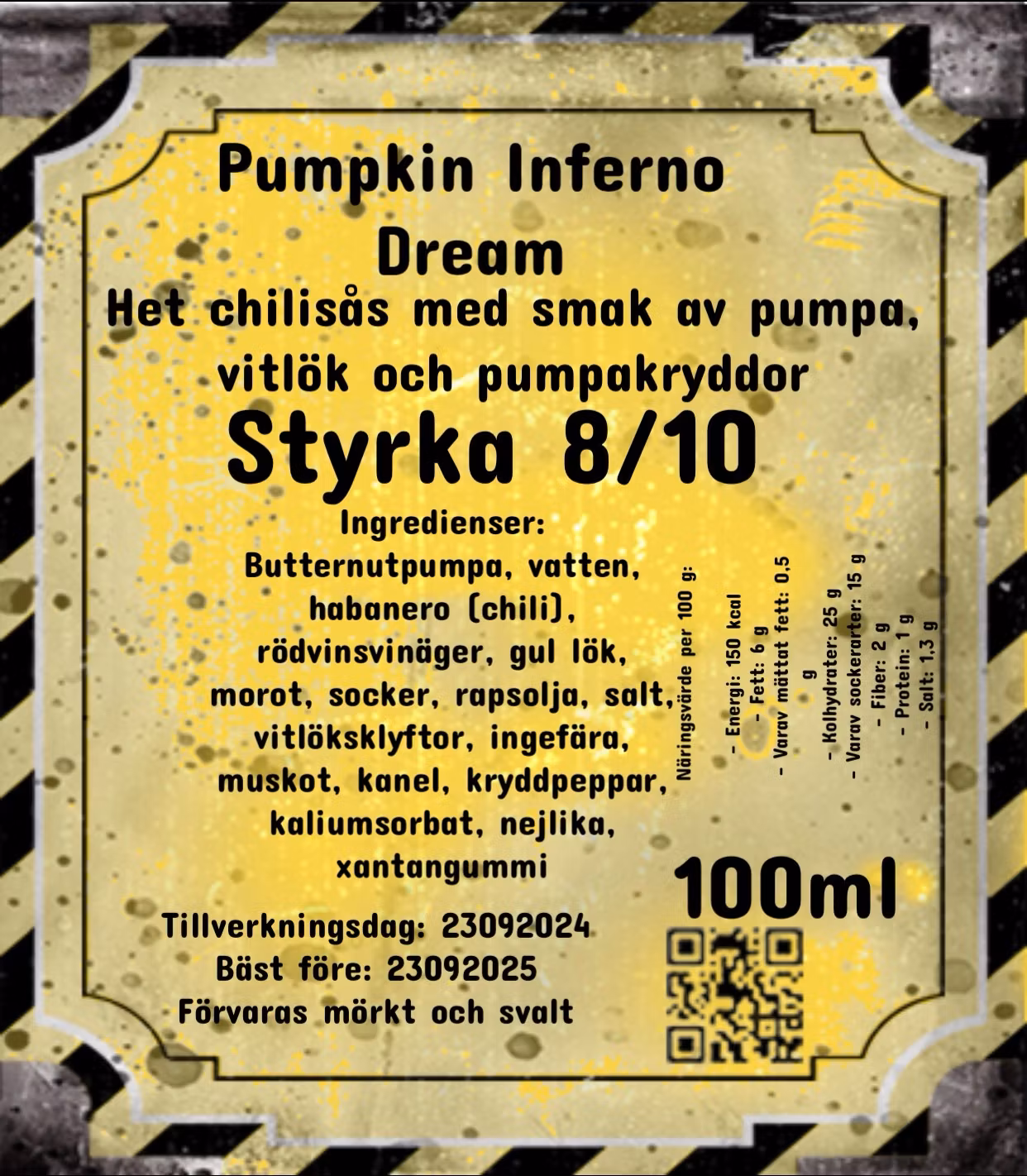Pumpkin Inferno Dream är den perfekta följeslagaren till tacos, grillade grönsaker, hamburgare eller som en smakrik dipp till dina favoritchips. Med sin balanserade hetta och djupa smak är denna chilisås idealisk för både chiliälskare och de som vill utforska nya smakdimensioner.
