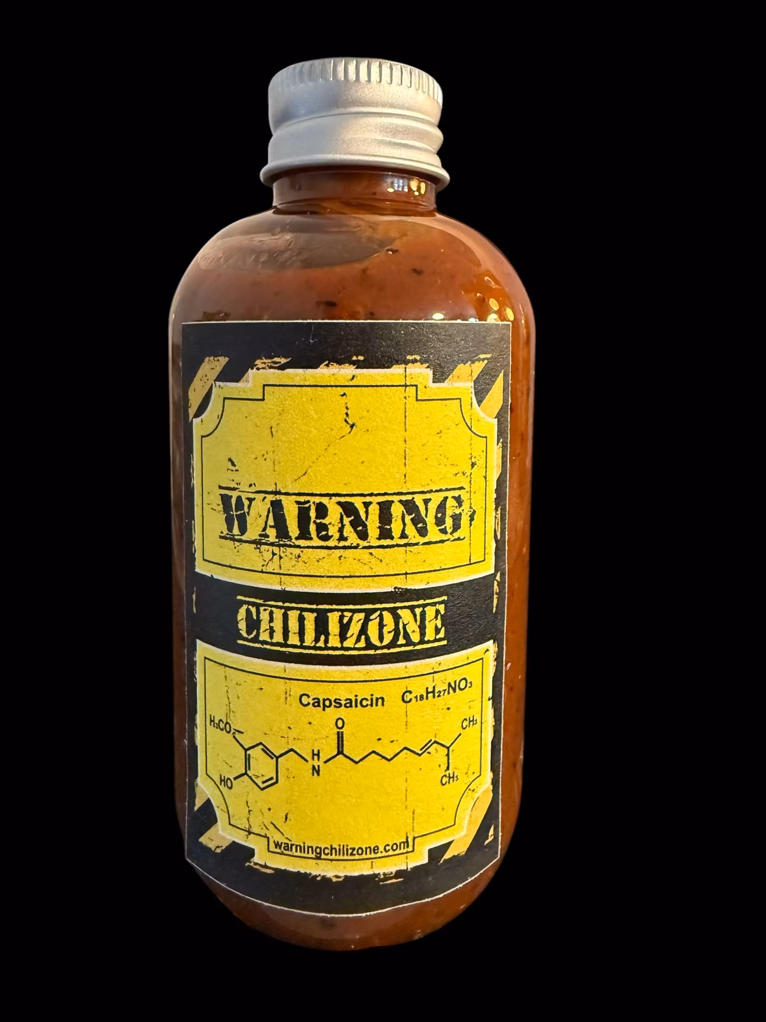 röd habanerochili 33.5 %, grön cayennechili 13.8 %, gul lök, rödvinsvinäger, vatten, krossad tomat, tomatpuré, färsk vitlök, neutral olja, salt, guajillochilipulver 1.6 %, limejuice, socker, Carolina Reaper-chili 0.7 %, chipotlechilipulver 0.2 %, oregano, svartpeppar, spiskummin, konserveringsmedel (kaliumsorbat), stabiliseringsmedel (xantangummi)