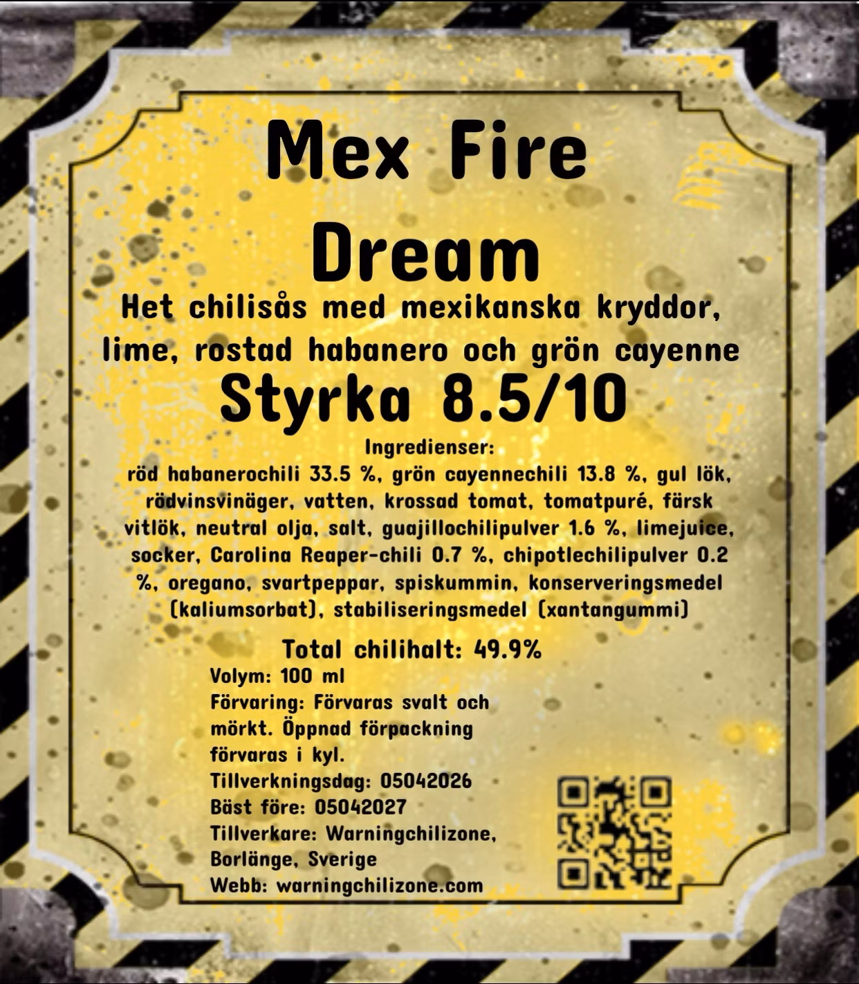 MEX FIRE DREAM – rostad chilisås för tacos och grillatMex Fire Dream är en mörk och rustik chilisås byggd för mat. Rostad chili, lök och tomat ger en djup och v